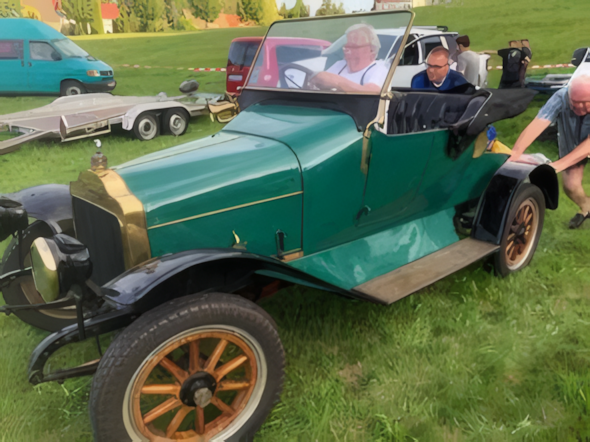 In unserem Club besitzen wir auch einen eigenen Oldtimer, einen BRENNABOR, gebaut in Brandenburg an der Havel. Das Fahrzeug stammt aus dem Baujahr 1910, wobei eine 100prozentige Sicherheit nicht besteht. Das Fahrzeug könnte auch aus dem Jahre 1912 stammen. Es bekam bereits vor Jahren eine Hauptrolle in einem Film des RBB und steht heute in der Brennabor Abteilung des Industriemuseums in der Stadt Brandenburg. Angekauft wurde es 1958 von einem Berliner Schrottplatzhändler, damals „Autofriedhof“ genannt, der 2.000.- DM dafür bekam. Seitdem ist viel gemacht worden. Zuletzt wurde ein Riss im Motorblock mit moderner Laserschweißtechnik geschlossen und das Fahrzeug fährt wieder aus eigener Kraft.